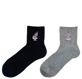 くいだおれ太郎靴下 (刺繍入り) ブラック/グレー